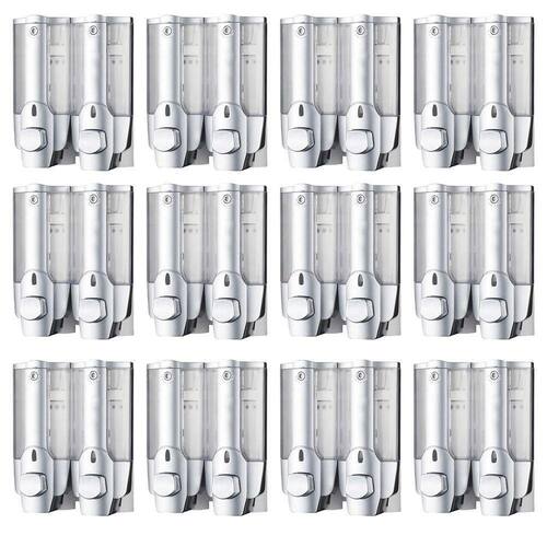 Dispenser Duplo com reservatório para Shampoo, Sabonete ou Álcool Gel possui manuseio pratico e fácil de ser instalado, garante eficiência