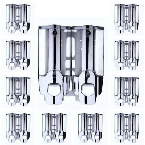 Dispenser Duplo com reservatório para Shampoo, Sabonete ou Álcool Gel possui manuseio pratico e fácil de ser instalado, garante eficiência