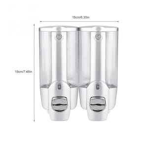 Dispenser Duplo com reservatório para Shampoo, Sabonete ou Álcool possui manuseio pratico e fácil de ser instalado. Garante eficiência e evita desperdício na saída do sabonete.