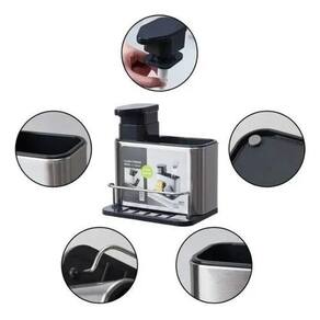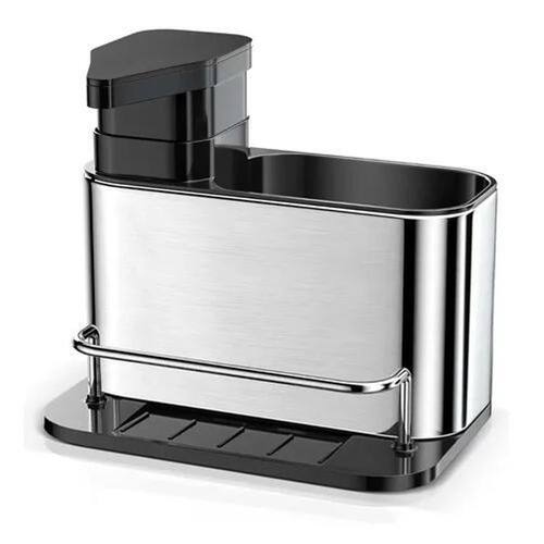 Dispenser Inox Porta Detergente Sabão Liquido Esponja Bucha Dispenser Inox porta detergente Sabão Liquido Esponja Bucha Organizador Luxo Aço Inox 304 Dispenser Detergente Pia Cozinha Porta Esponja