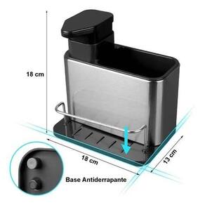 Dispenser Inox Porta Detergente Sabão Liquido Esponja Bucha Dispenser Inox porta detergente Sabão Liquido Esponja Bucha Organizador Luxo Aço Inox 304 Dispenser Detergente Pia Cozinha Porta Esponja