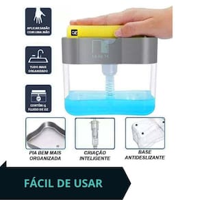 Bem vindo a a Lá No 74, nossa missão é entregar produtos de alta qualidade, em tempo ágil e que tragam valor para nossos clientes, garantindo a sua felicidade e estabelecendo uma relação de confiança. Nossos produtos são sempre embalados com carinho, para que você possa desfrutá-los da melhor forma possível assim que os receber. Dispenser Para Detergente Sabao 2x1 Detergente Suporte Porta Bucha Esponja 01 Unidade Produto desenvolvido com carinho exatamente para você O dispenser de detergente 2 em 1 é o que você precisa para facilitar e agilizar a sua rotina de limpeza na cozinha. Produzido em polipropileno resistente, o dispenser é simples de ser utilizado e tem capacidade de armazenar até 380ml de produto. Adequado para cozinhas domiciliares, restaurantes, hotéis, ou qualquer ambiente que precise de mais praticidade na hora de higienizar a cozinha. O produto evita o desperdício de detergente, pois possui dosador que funciona por pressão, e mantém a esponja seca para futuras utilizações. Atenção: anúncio referente a 1 dispenser para detergente e 1 esponja. Atenção: produto não acompanha detergente. Características: Material: polipropileno Cores: Cinza, Preto, Branco e Vermelho - Enviaremos conforme disponível. Capacidade: 385ml Conteúdo da embalagem: 1 Dispenser para detergente 1 Esponja Ean: 7894786110007