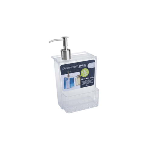 Na hora de manter a pia organizada, o Dispenser Multi, criado para a linha Sobre a Pia, cai como uma luva. O organizador de pia acomoda o detergente, a esponja e até mesmo o paninho para secar a pia, pois o produto tem uma alça especialmente para este fim, que o mantém sempre sequinho. Os furos internos evitam que a esponja fique em contato com a água e estrague. Sua pia vai ganhar um ar moderno e organizado. No compartimento do detergente, que comporta 600ml, o bico dosador também evita desperdícios.