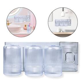 O organizador possui 3 aberturas, ou para os copos ou para cosméticos e itens em geral, abaixo do organizado são encaixados três ganchos prateados para colocar os copos, ou para organizar escovas de dentes, acompanha um adesivo de fácil aplicação na parte de trás do produto, para que seja colado na parede, feito de alta qualidade, não permite que o organizador se descole.