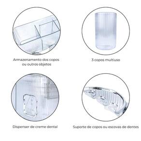 Composto por 3 copos acrílicos multiuso, que podem ser utilizados para enxaguar a boca, serem porta objetos da pia, organizadores e muito mais