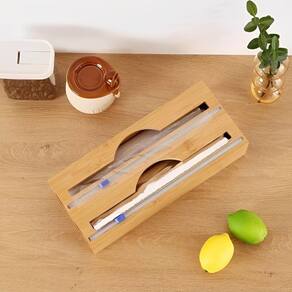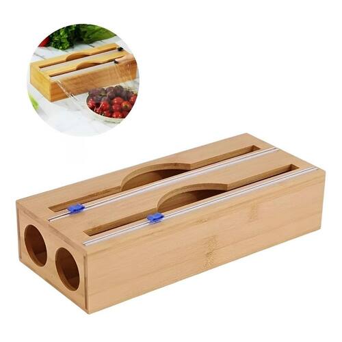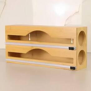 Dispenser Papel Toalha E Filme Pvc Com Cortador Duplo Bambu