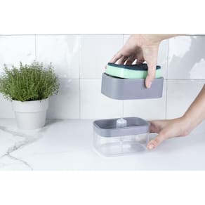 O produto evita o desperdício de detergente, pois possui dosador que funciona por pressão, e mantém a esponja seca para futuras utilizações.