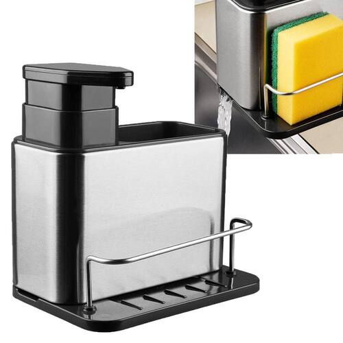 Dispenser Pia Porta Detergente Esponja Talher 3 Em 1 Inox Cozinha Balcao Limpeza Higienico Organizador