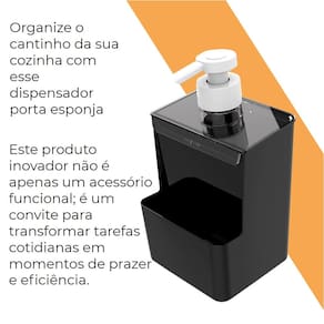 Dispenser Porta Detergente Esponja 500ml Cozinha Preto