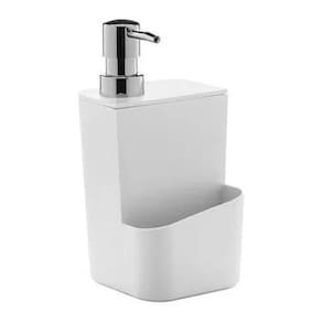 Dispenser porta detergente esponja + escorredor de talheres Cor: branco F6136 maple decor Dispenser porta detergente esponja + escorredor de talheres Especificações dispenser detergente Altura: 20cm largura: 9,5cm comprimento: 10cm Válvula dosadora em abs cromado giratória 360º Fabricado em polipropileno Cores: preto, branco, Cinza Capacidade: 650 ml Especificações escorredor de talheres Altura: 12,4cm largura: 9cm comprimento: 12,4cm Fabricado em polipropileno Cores: preto, branco, Cinza -possui 2 divisórias Material polipropileno - material com qualidade, durabilidade alta resistência a impactos e ao calor. Não transfere odor. Resistência à água fervente, suportando até 150 c. Conteúdo na embalagem 01 dispenser detergente 01 escorredor de talheres; O dispenser para detergente e esponja trium 650 ml é perfeito para quem procura funcionalidade e beleza sobre a pia, pois permite a organização de forma versátil além de otimizar o espaço do ambiente. Com design minimalista, ele combina com todos os tipos de cozinhas ou varandas gourmet. O dispenser possui válvula dosadora que permite dosagem do detergente gerando economia, e compartimento para esponja que é fechado, ou seja, o produto vai da pia direto para a gaveta ou armário sem escorrer água. Fabricado em material resistente e flexível polipropileno , além do plástico ser texturizado impedindo riscos e facilitando a higienização. Praticidade, beleza e design são as características da linha trium pensadas para proporcionar qualidade na organização da sua pia. Cuidados Este produto é bpa free, não vai ao freezer ou ao micro-ondas. Vai a lava-louças, sugere-se higienizar com sabão neutro e esponja macia, evitando produtos abrasivos no processo de limpeza.