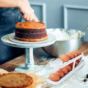 Com um sistema inteligente de rolamento automático, o dispenser libera os ovos um de cada vez, graças à pista inclinada por gravidade. Ao retirar um ovo da saída, o próximo imediatamente rola para a posição, garantindo facilidade e praticidade no dia a dia.