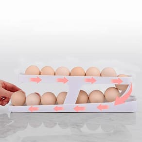 Dispenser Porta Ovos Rolante de 2 Camadas Bandeja Organizadora