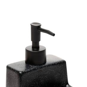 Dispenser porta sabão e suporte esponja 430ml cerâmica pia Com acabamento em granilite preto, este porta detergente líquido possui um suporte integrado para esponja, combinando funcionalidade com um visual moderno. Fabricado em cerâmica resistente, oferece durabilidade e robustez, mantendo-se bonito e funcional por muito tempo. Sua capacidade é de 430ml de detergente, proporcionando o uso prolongado, e sem a necessidade frequente de recargas. O dosador integrado permite uma aplicação precisa do detergente, enquanto o suporte para esponja mantém ambos os itens organizados e ao alcance das mãos.