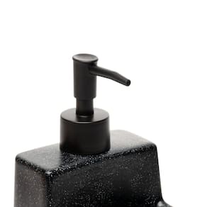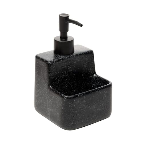 Com acabamento em granilite preto, este porta detergente líquido possui um suporte integrado para esponja, combinando funcionalidade com um visual moderno. Fabricado em cerâmica resistente, oferece durabilidade e robustez, mantendo-se bonito e funcional por muito tempo.