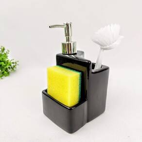 USO: Qualquer detalhe em um ambiente, é sinal de bom gosto e elegância, então, que tal usar este dispenser para detergente com lateral para bucha de louça e escovinha, produzido em cerâmica na cor preta Design moderno que ajuda a evitar desperdício do sabão e diminuir a poluição do meio ambiente além de manter sua cozinha sempre organizada