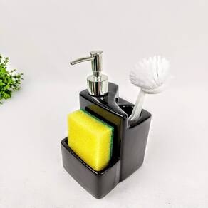 USO: Qualquer detalhe em um ambiente, é sinal de bom gosto e elegância, então, que tal usar este dispenser para detergente com lateral para bucha de louça e escovinha, produzido em cerâmica na cor preta Design moderno que ajuda a evitar desperdício do sabão e diminuir a poluição do meio ambiente além de manter sua cozinha sempre organizada