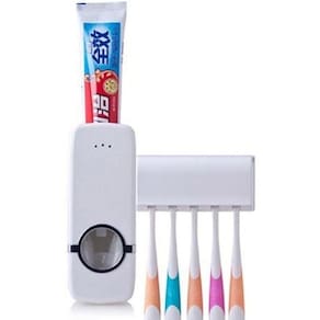Dispenser Suporte Pasta De Dente Automático E Escova Branco Características do Produto: Não utiliza pilhas, acionado por mecanismo mecânico O creme dental sai automaticamente, em quantidade necessária para uma excelente escovação Utiliza um sistema de vácuo, desta maneira tira toda a pasta dentro do tubo sem a necessidade de usar as mãos Evita desperdícios, economizando creme dental Formato de bico universal, adaptável a todos os tipos de creme dental Mantém as escovas livres das bactérias dos banheiros Cor: Branco Acompanha porta escova, com capacidade para até 5 escovas Medidas aproximadas do dispenser: 16 x 6,7 x 6 cm Medidas aproximadas do suporte para escovas: 11 x 5 x 4 cm Escovas e Pasta não estão inclusos. Ean: 7908339100244