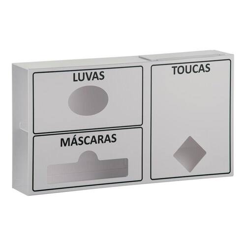 Dispenser Epi Triplo Luva Máscara Touca Descartável RamebelModelo exclusivo para o encaixe das embalagens de luvas e máscaras, para as Toucas armazenamento a granel, diretamente no suporte.Para caixas com medidas de até 12cm x 25,5cm x 7,8cm Dimensionado para a maioria das embalagens de luvas existentes no mercado, antes de efetuar a compra, confira as medidas citadas acima.Acompanha kit para fixação na parede, contendo: bucha, parafuso e fita dupla-face.Indicados para armazenar Equipamentos de proteção individual de uso único.Mantém a organização e praticidade.+ Segurança+ Organização+ Praticidade+ Visibilidade Marca: Ramebel