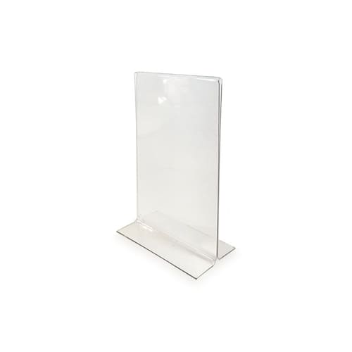 Cada display é fabricado em PETG cristal, um material transparente que permite uma excelente visualização do conteúdo. O modelo T Invertido garante uma orientação horizontal, garantindo ainda mais destaque para os folhetos e flyers.