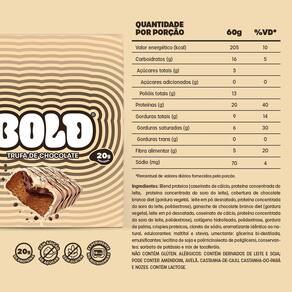 Display 12 Un Barra De Proteína 40g Bold Sabor: Trufa de Chocolate A Barra de Proteína Bold é uma excelente opção para quem busca aliar sabor e praticidade em uma alimentação saudável. Cada barra de 60g oferece aproximadamente 20g de proteínas e 5g de fibras, além de ser livre de adição de açúcares. Essa combinação torna a Bold Bar uma escolha ideal para lanches rápidos, no trabalho, na academia ou até durante viagens, sem comprometer a qualidade nutricional.