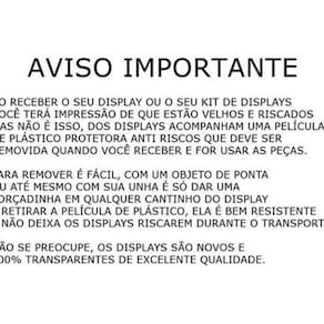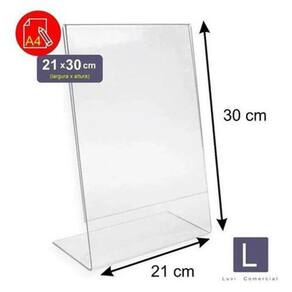 Display a4 l acrílico mesa expositor papel 05 peças Descrição Display 5 unidades Suporte de papel para porta folha e folheto a4 em ps 100% virgem no formato l , são produtos de alta resistência, durabilidade e transparência de primeira qualidade (não é reciclado ou chinês). Fabricados em máquinas tecnológicas e computadorizadas, promovendo cortes perfeitos, utilizando de chapas de ps (virgens). Onde utilizar seu display O display é a forma mais simples, fácil e eficiente de divulgação para diversos tipos de exposição de anúncios, comunicados, certificados, alvarás, licenças, suportes para notificações, ofertas, porta cartazes, porta folders, porta cardápios, mesas, estantes, vitrines, flayers, sinalizações informativas, sinalização empresarial, podem ser utilizados em residências e empresas, condomínios residenciais, restaurantes, hospitais, repartições públicas, feiras e qualquer tipo de comunicação entre você e seus clientes ou funcionários. Especificações Modelo: display em ps formato l Modelo: a4 Quantidade: 1 peça Tamanho Altura: 30cm Largura: 21 cm Base: 21 x 9 centímetros Material: ps Ps transparente (cristal) de 1.5 milímetros de espessura. Benefícios - peça fabricada com corte a laser - não amarela com o tempo - excelência resistência e durabilidade - material resistente e forte Cada display acompanha a película de plástico anti-risco na parte da frente para que não risquem um no outro durante o transporte, após receber a mercadoria o comprador deve retirar a película de plástico da frente de cada display. Para retirar a película é só dar uma forçada com a unha no cantinho do display e retirar a película. Você já pode usar. Cuidados com os produtos A limpeza deve ser feita sempre com um pano macio ou flanela a fim prolongar a vida útil do material. Não usar esponjas, materiais de fricção, não utilize álcool puro ou solventes. Agradecemos pela visita e aguardamos a sua compra.