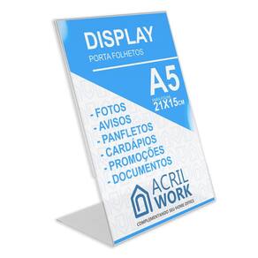Display Acrílico Porta Folha Papel A5 L Vertical Mesa Balcão O display expositor em L porta folha é ideal para destacar informações importantes e anúncios criativos em mesas e balcões. Extremamente transparente, colabora para chamar atenção Expõe informações de forma elegante, protegendo as folhas da umidade ou sujeira. Prático: você pode trocar a mídia ou informativo sempre que desejar Não precisa ser fixado Inclinação perfeita para visualização Ele possui um ângulo perfeito para a boa visualização das peças gráficas ou documentos e apresenta facilidade para a troca de mídia. Isso faz dele uma opção super econômica para quem troca de campanhas e anúncios com frequência, além de ser uma peça sustentável - como o seu informativo não é impresso na peça e sim inserido no display, não há necessidade de reposição e você não prejudica o meio ambiente Medidas: 21,5cm x 15,1cm x 8,7cm altura x largura x profundidade Ideal para folha A5 14,8cm x 29,7cm Espessura: 2mm Cor: transparente Onde utilizar o Display Porta Folha de Acrílico Vertical Modelo L no Tamanho A5 O display expositor em L porta folha permite amostra prática e eficaz de qualquer material. produzido sem emendas e com material translúcido, seu brilho colabora para chamar a atenção dos clientes. como é feito com material versátil, pode ser em vários ambientes distintos, como restaurantes, hotéis, vitrines, balcões de lojas, bancos e escritórios. Ele não precisa ser fixado, o que traz uma grande vantagem, já que assim é possível utiliza-lo em qualquer mesa, balcão ou prateleira e, inclusive, trocar de lugar quando for conveniente. Como usar o Display Porta Folha de Acrílico Vertical Modelo L no Tamanho A5 No display porta folha A5 você pode expor flyers, valores e/ou descrições de produtos. eles também podem ser utilizados para numerar mesas de restaurantes ou praças de alimentação, além de apresentar cardápios do estabelecimento ou menu de evento. além disso, nossos displays possuem ótima qualidade no acabamento, com dobras perfeitas que facilitam a colocada e retirada de papéis sem que sejam danificados. Como higienizar o Display Porta Folha de Acrílico Vertical Modelo L no Tamanho A5 Para higienizar o display, bem como qualquer outra peça em acrílico, é recomendado usar produtos específicos para a limpeza do material ou apenas água e sabão neutro, aplicados com flanela macia. Produtos de limpeza comuns podem danificar a peça. O display Porta Folhas em Acrílico é uma peça ideal para estabelecimentos que desejam expor regras, sugestões, descrição de produtos ou serviço e, até mesmo, servem como uma reforço nas campanhas de marketing Feitos em acrílico, sem emendas, eles possuem um acabamento perfeito, permitindo o uso nos mais variados ambientes. compre aqui os melhores Displays Porta Folhas do mercado Atenção: - Todos os produtos são enviados com película protetora. Lembre-se de removê-la antes de usar a sua peça : 180 dias de para defeitos de fabricação. ficam isentos problemas por quebra decorrente de impactos, peças manuseadas de maneira indevida, uso de materiais de limpeza inadequados, mau uso ou mau acondicionamento Imagens meramente ilustrativas