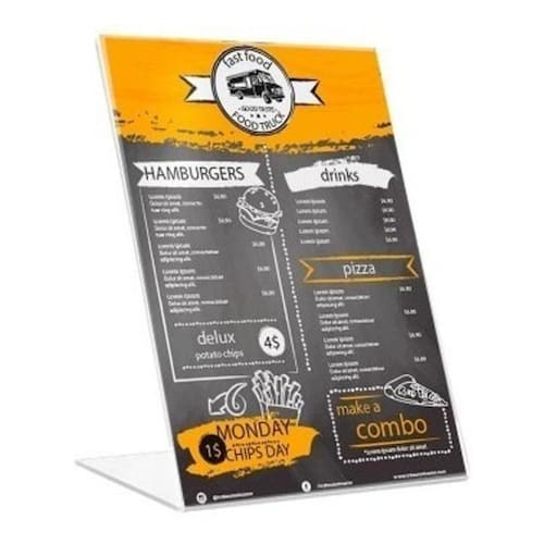 Display de pvc tipo l a5 vertical 15x21cm 2 peças