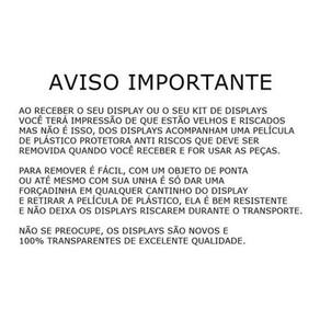 Cada display acompanha a película de plástico anti-risco na parte da frente para que não risquem um no outro durante o transporte, após receber a mercadoria o comprador deve retirar a película de plástico da frente de cada display. Para retirar a película é só dar uma forçada com a unha no cantinho do display e retirar a película. Você já pode usar.