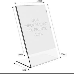 Display expositor em l 10x15 acrílico ps cristal a6 50 peças Ótimo produto para divulgação de uma propaganda, colocação de uma foto, numeração de mesas, pequenos textos e etc... O acabamento é brilhante nas bordas, o ps cristal é um material ao acrílico, ps significa poliestireno, uma espécie de plástico, a qualidade é muito boa, o ps é cristal, e brilhante, e se não passar nenhum produto químico como solvente no material dura anos e anos. Características: Utilizado para expor 1 foto. Fabricado em ps cristal de 2mm. Peça única sem colagem, utilizando apenas dobras o que garante maior durabilidade. Tamanho: Altura: 15 cm Largura: 10 cm Manuseio: Para melhor conservação de qualquer material plástico e do seu display ou porta folha, não utilizar para limpeza álcool puro ou solventes, utilize apenas um pano úmido e macio. Consulte outras quantidades e obtenha desconto. Marca: Shoppcril Ean: 7908288401843