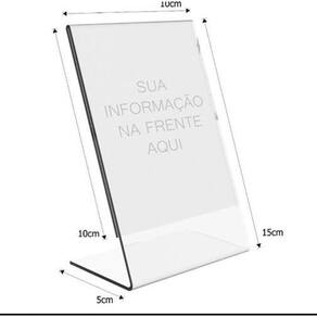 Display expositor em l 10x15 acrílico ps cristal a6 50 peças Ótimo produto para divulgação de uma propaganda, colocação de uma foto, numeração de mesas, pequenos textos e etc... O acabamento é brilhante nas bordas, o ps cristal é um material ao acrílico, ps significa poliestireno, uma espécie de plástico, a qualidade é muito boa, o ps é cristal, e brilhante, e se não passar nenhum produto químico como solvente no material dura anos e anos. Características: Utilizado para expor 1 foto. Fabricado em ps cristal de 2mm. Peça única sem colagem, utilizando apenas dobras o que garante maior durabilidade. Tamanho: Altura: 15 cm Largura: 10 cm Manuseio: Para melhor conservação de qualquer material plástico e do seu display ou porta folha, não utilizar para limpeza álcool puro ou solventes, utilize apenas um pano úmido e macio. Consulte outras quantidades e obtenha desconto. Marca: Shoppcril