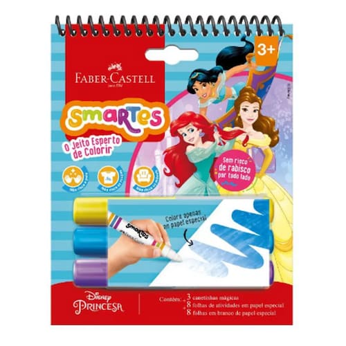 Kit de colorir Princesas 755900 - Faber-Castell Smartes é para você que ama ver as crianças entretidas e se divertindo com alguma atividade criativa, sem precisar ficar dizendo não a toda hora. Com os kits mágicos de colorir da Faber-Castell, elas se surpreendem com as cores que só aparecem no papel especial e não faz sujeira em qualquer lugar.