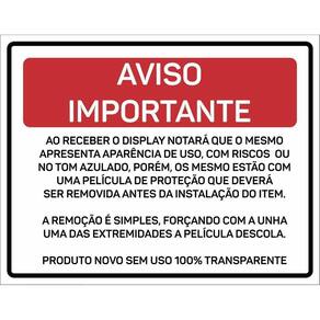 Tamanho do display: 31.5 Cm de altura X 44 Cm de largura Cor: Transparente Espessura: 2 mm Qualidade: Virgem