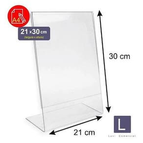 Suporte de papel para porta folha e folheto a4 em ps 100% virgem no formato l , são produtos de alta resistência, durabilidade e transparência de primeira qualidade (não é reciclado ou chinês). Fabricados em máquinas tecnológicas e computadorizadas, promovendo cortes perfeitos, utilizando de chapas de ps (virgens).