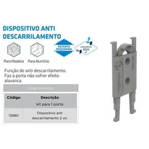 Dispositivo Anti-Descarrilamento Para Armário Porta De Correr Dispositivo Anti Descarrilamento RometalFunção de anti-descarrilamento. Faz a porta não sofrer efeito alavanca. Compatível com todas as guias e amortecedor do mercado. exceto Guias Inteligentes - os que pressionam a lateral do trilho por mola .Características:- Material: Plástico- Tipo de porta para ser aplicado: Somente portas de Correr- Utilizado em: Guarda Roupas ou Armarios de Correr em geral- Vendido em par 2 peças - Espessura: 3mm Marca: Não Informado Ean: 7908202633435