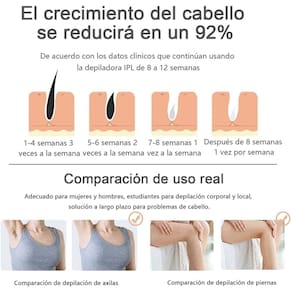 Adeus ao uso de equipamentos de depilação para depilação dolorosa, cuidados de salão longos ou caros. O uso de luz pulsada forte e tecnologia de resfriamento de safira proporciona uma experiência de depilação de salão verdadeiramente indolor. Este dispositivo de depilação fácil de usar usa tecnologia de resfriamento com gelo de safira para fornecer luz pulsada de alta energia que é resfriada a 50 graus Fahrenheit, protegendo e restaurando a vitalidade da pele, proporcionando uma sensação confortável de frio durante o uso, removendo permanentemente o excesso de pêlos em apenas 10 minutos. A cabeça careca plana foi projetada para remover com eficácia os pelos das áreas ausentes no dispositivo côncavo para calvície, como axilas, pernas, tórax, linhas de biquíni, etc. Esta depiladora indolor para mulheres e homens foi testada em laboratório e reduz a regeneração capilar em 90% após apenas quatro semanas. Coloque facilmente o dispositivo de depilação Air + de 6,69 x 2,36 x 1,5 polegadas e 3,62 libras na embalagem e remova rapidamente o cabelo quando necessário. Para aumentar o conforto e a segurança, o dispositivo de depilação air + tem cinco níveis de intensidade e é adequado para todos os tipos, áreas e sensibilidades da pele.