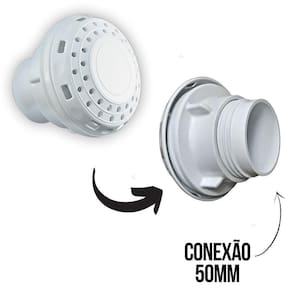 Este dispositivo de dreno de nível 50mm, feito em ABS, possui uma vazão máxima recomendada de 1.500 litros por hora. Sua função principal é evitar o transbordamento da água, o que é de extrema importância em piscinas de fibra. A infiltração de água por trás do bolsão de fibra pode resultar em danos irreversíveis. Além disso, o dispositivo também pode ser utilizado para sucção.