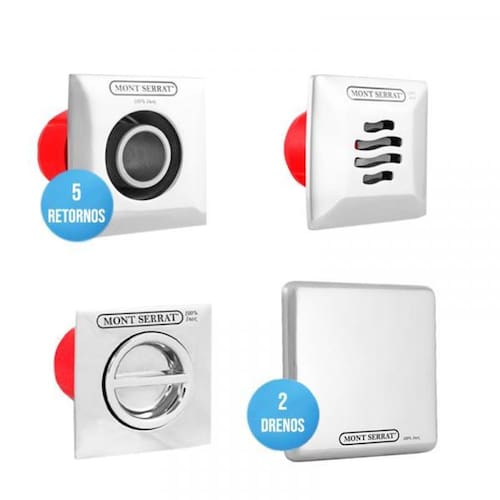 5 Dispositivos de retorno Inox Quadrado - 60mm - Mont Serrat 1 Dispositivo nivelador Inox Quadrado - 60mm - Mont Serrat 1 Dispositivo de Aspiração Inox Quadrado - 60mm - Mont Serrat 2 Drenos Inox 15m - 60mm - Mont Serrat