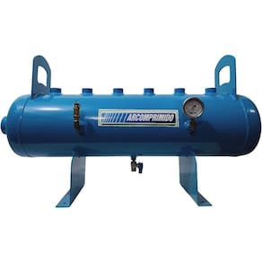 Distribuidor de Ar para Mineração DH25-6 (mod.1) com 02 conexões nas calotas, 01 de 2'' e 01 de 1". 06 saídas superior de 1". Luvas laterais para acessórios de segurança (manômetro e válvula de segurança) de 1/4'' e luva inferior de 1/4'' (dreno). Pressão máxima de trabalho 12,3kg/cm. Dimensões; Altura: 350 mm, Comprimento total: 1030 mm, Diametro corpo: 180 mm, Altura total com alça de movimentação: 430 mm. Acompanha documentação com certificado de teste hidrostático. Acompanha os acessórios de segurança manômetro, válvula de segurança e dreno Manual - necessários para uso.