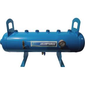 Distribuidor de Ar para Mineração DH45-6 (mod.1) com 02 conexões nas calotas, 01 de 2'' e 01 de 1". 06 saídas superior de 1". Luvas laterais para acessórios de segurança (manômetro e válvula de segurança) de 1/4'' e luva inferior de 1/4'' (dreno). Pressão máxima de trabalho 12,3kg/cm. Dimensões; Altura: 575 mm, Comprimento total: 1030 mm, Diametro corpo: 250 mm, Altura total com alça de movimentação: 575 mm. Acompanha documentação com certificado de teste hidrostático. Acompanha os acessórios de segurança manômetro, válvula de segurança e dreno Manual - necessários para uso.