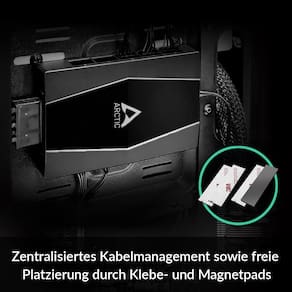 Arctic Hub de ventilador Case - Distribuidor de ventilador PWM de 10 dobras com alimentação SATA - Preto - GERENCIAMENTO DE CABOS: O hub do ventilador da capa pode ser colocado na carcaça, é conectado à placa-mãe com um cabo, você pode ficar sem muitos cabos adicionais e colocá-los livremente na parte invisível da caixa - Controle de ventilador síncrono: o sinal PWM definido é passado sincronicamente para todos os ventiladores conectados ao hub do ventilador da capa, o RPM do primeiro slot do ventilador é lido e devolvido ao seu sistema - Expanda sua ventilação: mesmo que você não tenha conectores de ventilador suficientes na sua placa principal, o hub do ventilador da capa expande seu sistema em mais 9 compartimentos de ventilador da caixa - Fonte de alimentação externa: os ventiladores são alimentados diretamente da sua fonte de alimentação via Sata Power, não há perda de tensão na velocidade do ventilador e uma operação suave e suave é possível - DETALHES TÉCNICOS: Saída: Soquete PWM de 10 x 4 pinos, Corrente de saída: até 1 A por porta, Entrada: Alimentação SATA + Cabeçote do Ventilador de 4 pinos, Corrente de entrada: até 4,5 A, Dimensões: 55,6 x 86,3 x 14,3 mm, Peso: 50 g