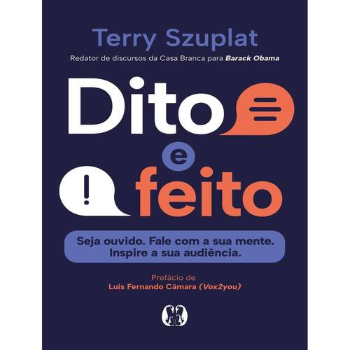 Fale Melhor Inspire Mais Transforme O Mundo À Sua Volta Um Discurso Por Vez Como Redator De Discursos Da Casa Branca Terry Szuplat Ajudou A Escrever Centenas De Discursos Para O Presidente Barack Obama Um Dos Grandes Oradores Do Nosso Tempo Ainda Assim Sentia Pavor De Falar Em Público Quando Foi Convidado A Fazer Seu Primeiro Grande Discurso Teve Que Decidir Seguir Se Escondendo Ou Enfrentar Seus Medos Em Dito E Feito Szuplat Compartilha As Lições Que Aprendeu Com Obama E Como Aplicou Essas Técnicas Para Se Tornar Um Comunicador Confiante A Cada Capítulo Ele Revela Conselhos Práticos E Histórias Inéditas Dos Bastidores Da Presidência Ajudando Você A Dominar A Arte De Falar Em Público O Livro Também Apresenta Exemplos Inspiradores De Pessoas Comuns Que Usaram Essas Ferramentas Para Criar Discursos Que Viralizaram E Motivaram Milhões De Pessoas Ao Redor Do Mundo Em Tempos De Polarização Dito E Feito Nos Lembra Do Poder De Uma Fala Feita Com Empatia Clareza E Verdade Escrito Com Humor E Sensibilidade É Um Guia Acessível Para Quem Quer Encontrar Sua Própria Voz E Falar Bem Em Qualquer Situação