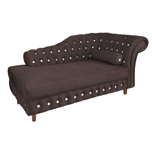 Divã Chesterfield Capitonado Marrom com Strass Suede Drossi