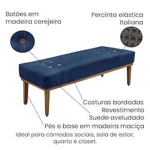 Divã Recamier Banco Base Madeira para Quarto Gênova 140cm Suede S04 - D`Rossi - Azul Marinho