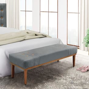 Divã Recamier Banco Base Madeira Para Quarto Gênova 160cm Veludo S04 - D`rossi Cor Cinza - Blush