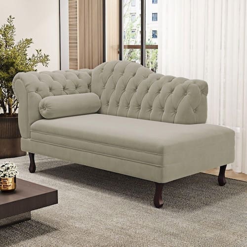 Divã Recamier Lavínia Estilo Clássico Capitonê com Pés de Madeira: um móvel que une sofisticação e conforto para valorizar qualquer ambiente. Seu acabamento capitonado traz elegância atemporal, enquanto o braço lateral à direita (visão sentado) oferece apoio e estilo únicos. Uma peça que transforma o espaço em cenário de charme e aconchego. Com estrutura em madeira de eucalipto, garante resistência e durabilidade. O estofado é produzido com espuma D-20 e D-23, equilibrando conforto e firmeza no uso diário. Os pés em madeira torneados destacam o estilo clássico e refinado, tornando o divã ideal tanto para uso funcional quanto decorativo. O produto acompanha almofada mimo exclusiva e é enviado montado, sendo necessário apenas fixar os pés.
