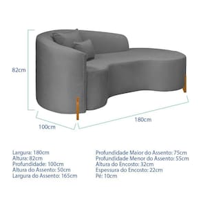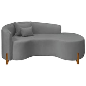 Divã Recamier Curvo Sala De Estar Recepção Inglaterra 180cm Pés Madeira Lado Direito Bouclé Cinza