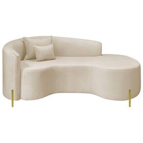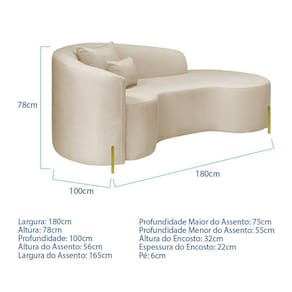 Divã Recamier Curvo Sala De Estar Recepção Inglaterra 180cm Pés Metal Dourado Lado Direito Bouclé Cor Bege