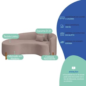 Divã Recamier Curvo Sala De Estar Recepção Inglaterra 200cm Pés Madeira Lado Esquerdo Linho Cor