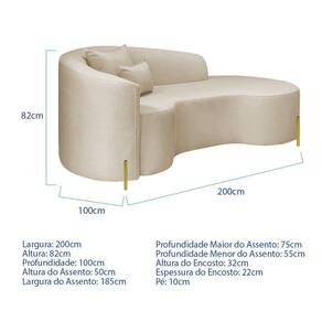 Especificações Técnicas do Divã Recamier Curvo Inglaterra: