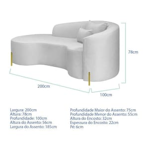 Especificações Técnicas do Divã Recamier Curvo Inglaterra: